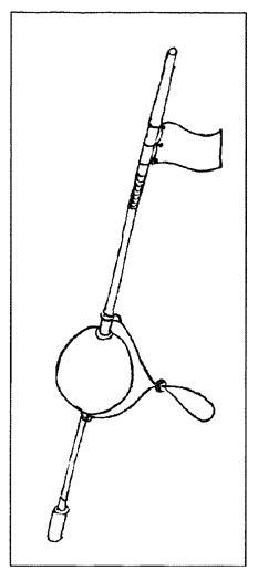 A buoy consists of a pole, a float, a weight, a light reflector, one or two flags and a beacon. Sometimes a radar reflector is added. A lanyard is attached to the buoy, so it can be attached to the rest of the gear.